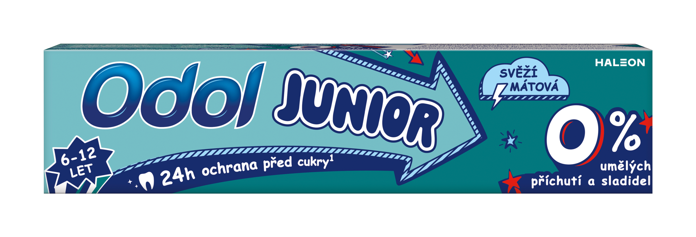 Sklovina na zubech dítěte je o 50% tenčí než sklovina dospělých a novým stálým zubům trvá až 3 roky, než dosáhnou plné síly. I proto mohou být náchylnější k tvorbě zubního kazu. Zubní pasta Odol Junior je speciálně navržena zubními lékaři pro děti ve věku 6-12 let. Díky svému složení pomáhá udržovat zuby dětí zdravé a silné. 24h ochrana před cukry¹. Bez obsahu cukru². Vegan friendly³. ¹Čistěte si zuby dvakrát denně zubní pastou s fluoridem a dodržujte zásady zdravé stravy, jelikož ochrana mezi čištěním zubů může být oslabená. ²Omezte konzumaci sladkého mezi jídly a čistěte si zuby dvakrát denně. ³Neobsahuje žádné živočišné produkty ani produkty živočišného původu.