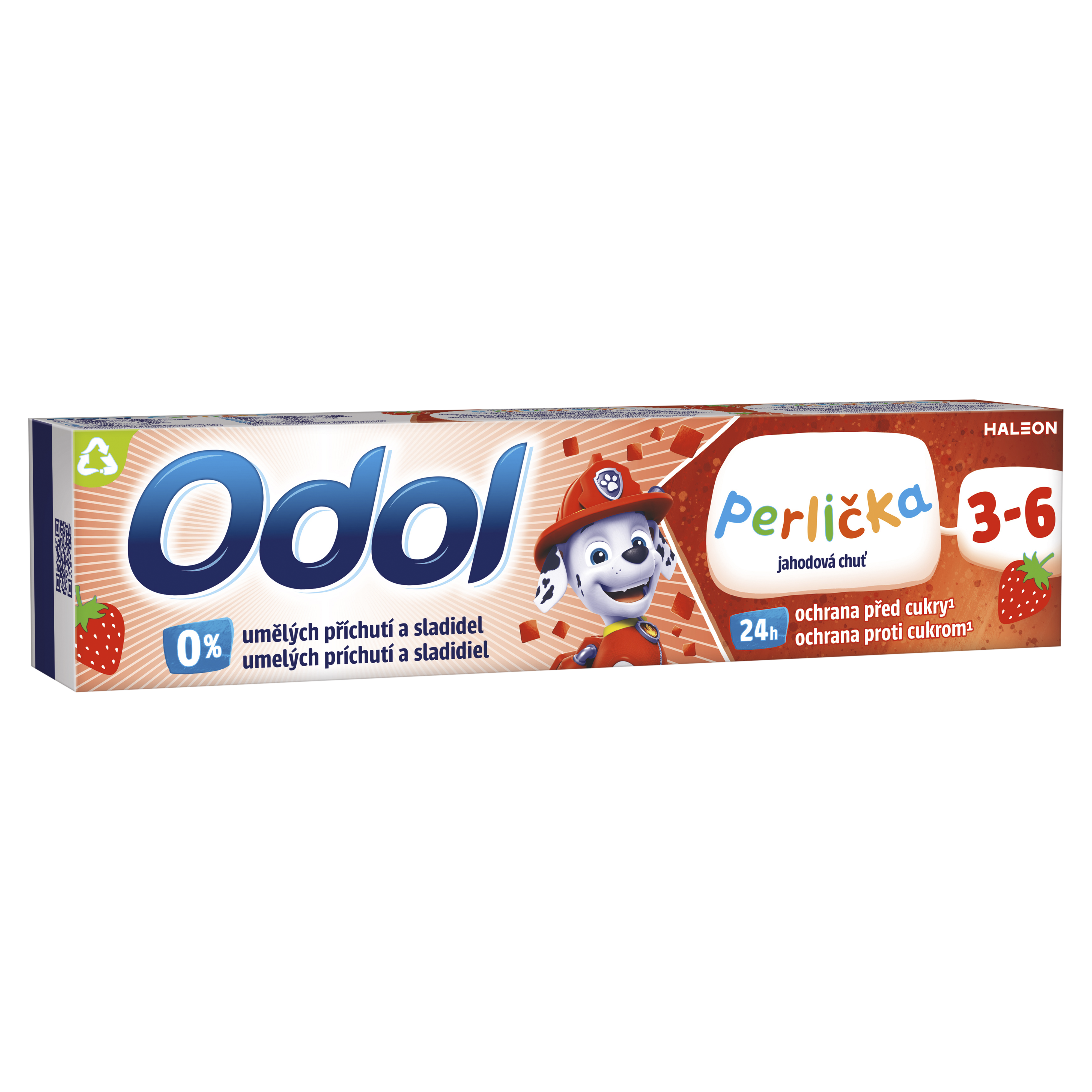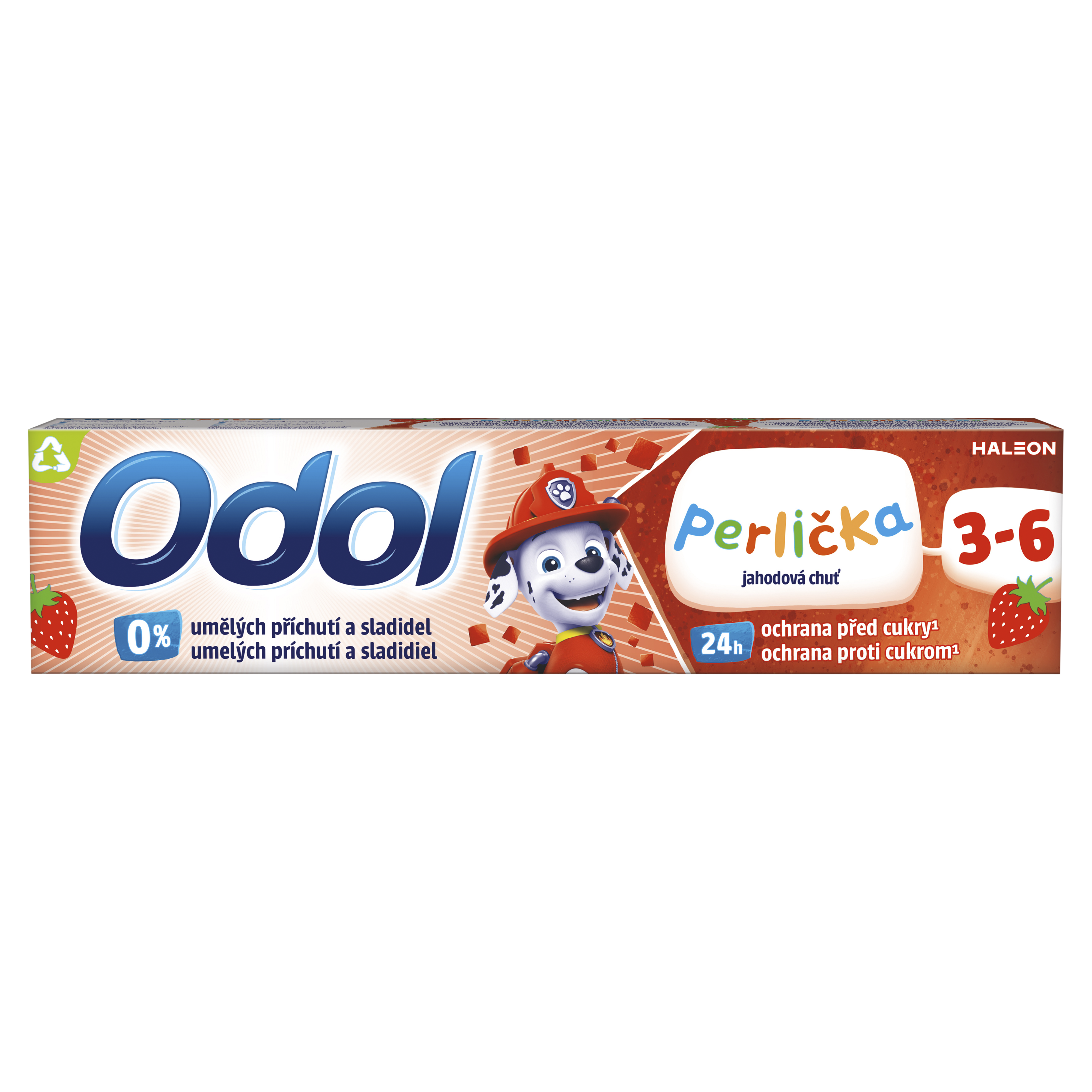 Úžasná svěží chuť povzbuzující k čištění zubů. Dětská sklovina je o 50 % tencí než sklovina dospělých a je náchylnější k napadení cukry, což muže vést ke vzniku zubního kazu. Odol perlička jahodová chuť je navržena ve spolupráci se zubními lékaři pro děti od 3 do 6 let a kombinuje úžasnou jahodovou chuť s účinným čištěním. Nové složení nyní obsahuje 0 % umělých přichutí a sladidel a poskytuje 24hodinovou ochranu před cukry¹.